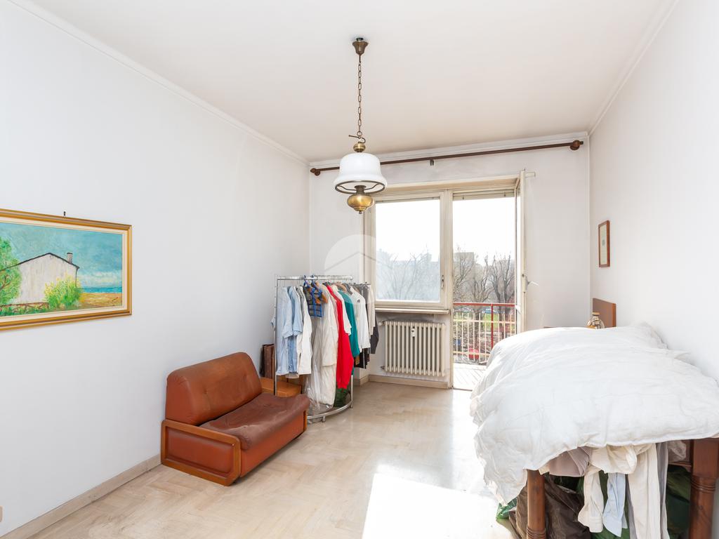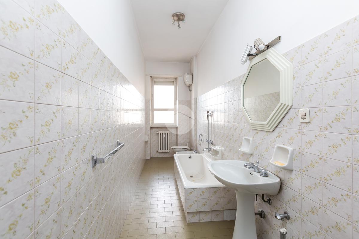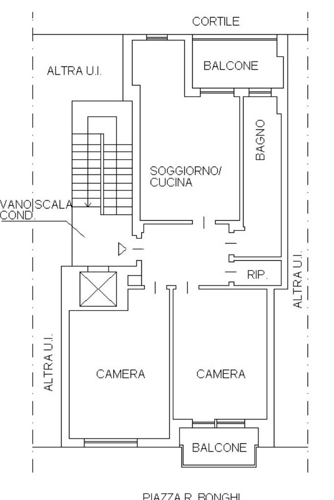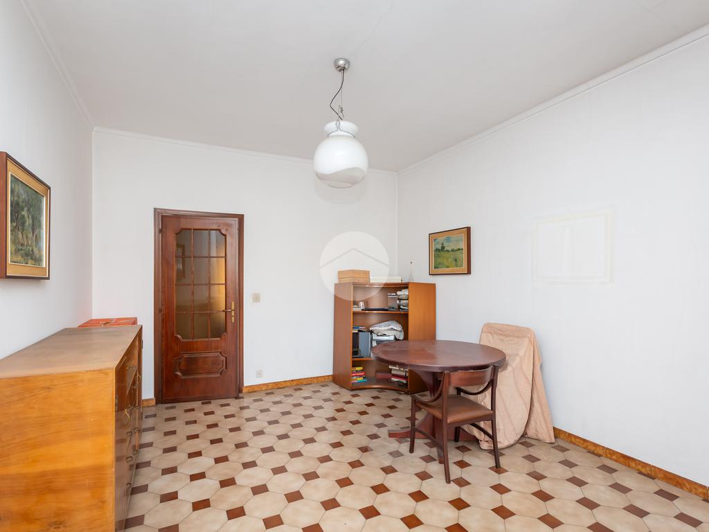 La zona notte è composta da due camere da letto, anch’esse ben squadrate e comode, con affaccio su Piazza Bonghi. Il bagno è completo di tutti i servizi ed è dotato di vasca da bagno. È inoltre presente un ampio ripostiglio, particolarmente utile per l’organizzazione della casa. Completano la proprietà la cantina e una soffitta posta al piano sottotetto.